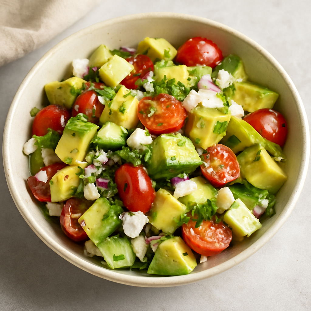 سلطة الأفوكادو الكيتو من الوجبات الصحية المثالية لمتّبعي نظام الكيتو دايت، لأنها تجمع بين الدهون الصحية، والنكهات اللذيذة، وسهولة التحضير. مغذية، مشبعة، وتناسب وجبة غداء أو عشاء خفيف دون الإخلال بالنظام الغذائي.