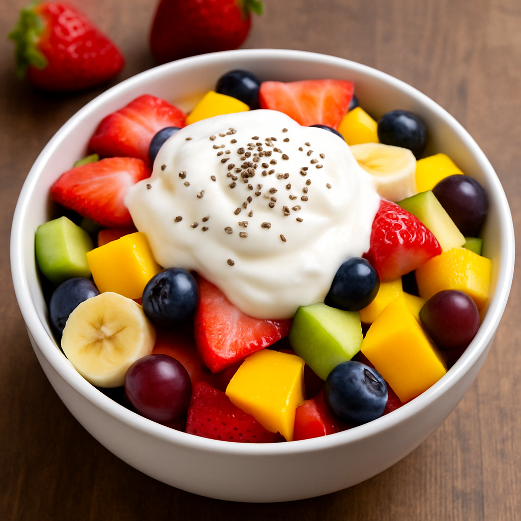 سلطة الفواكه مع الزبادي اليوناني من أشهى وأخف الحلويات الصحية، تجمع بين قوام الزبادي الكريمي ونكهة الفواكه الطازجة، وهي خيار مثالي للفطور، أو سناك بعد الرياضة، أو طبق حلو خفيف وسريع.